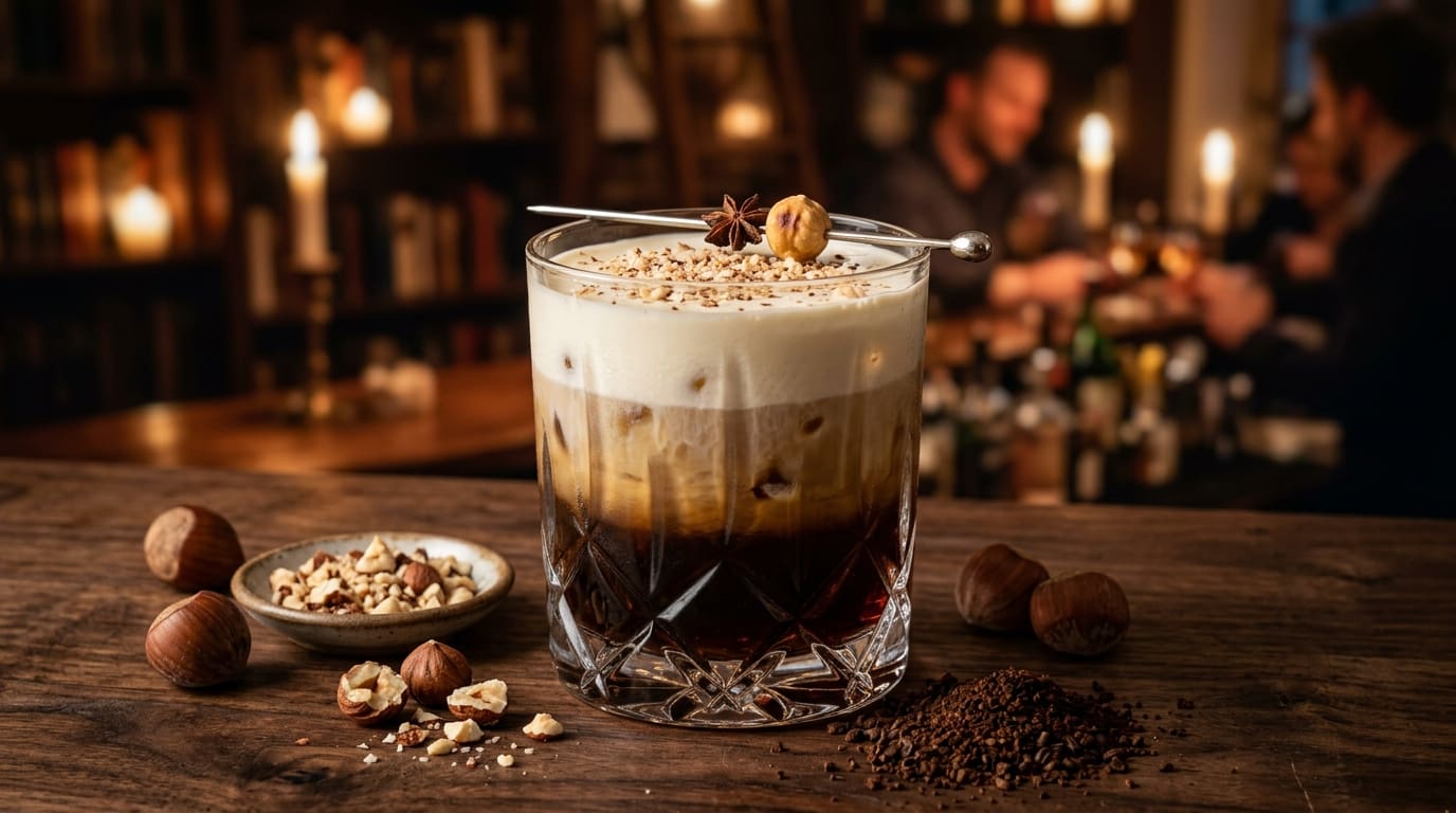 Inside: Nutty Irishman, Hazelnut White Russian, Frangelico Martini, Friar Tuck, Hazelnut Espresso Martini, and the full 120-recipe hazelnut-liqueur catalogue.