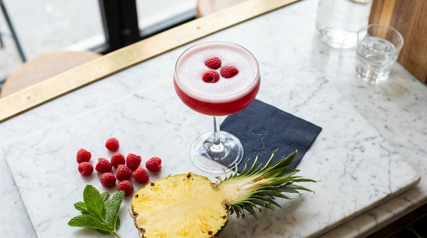 Inside: French Martini, Chambord Spritz, Purple Hooter, Raspberry Mojito, Raspberry Margarita, Raspberry Collins, Kir Royale variations, Pink Panty Dropper, and the full 200-plus raspberry-liqueur recipe catalogue.